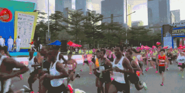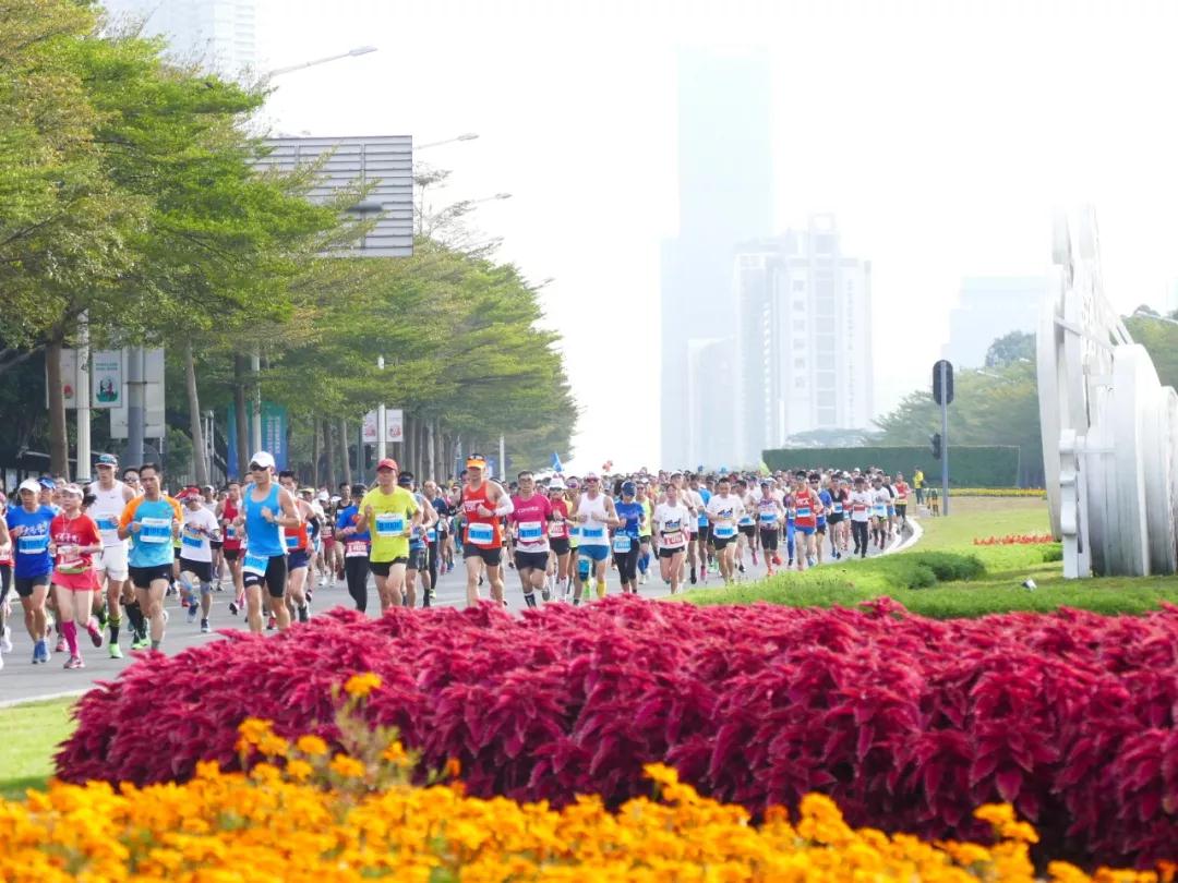 2019深圳國(guó)際馬拉松賽正式場(chǎng)鳴槍起跑。