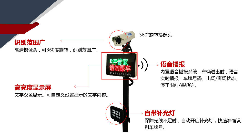 停車場進(jìn)出擁堵,通行效率低;車輛逃費(fèi)嚴(yán)重、被盜風(fēng)險(xiǎn)高;收費(fèi)管理難。智谷聯(lián)停車收費(fèi)管理系統(tǒng)為停車場裝兩只“鷹眼”助您眼觀八方,SLAY全場!自動識別車牌形成記錄,進(jìn)出無需刷卡,反應(yīng)迅速,一路暢通。入場就登記,一車一牌,有效避免車輛逃費(fèi)、被盜。雙攝像頭實(shí)時(shí)監(jiān)控車輛出入,云平臺自動計(jì)時(shí)計(jì)費(fèi),減少人力成本。