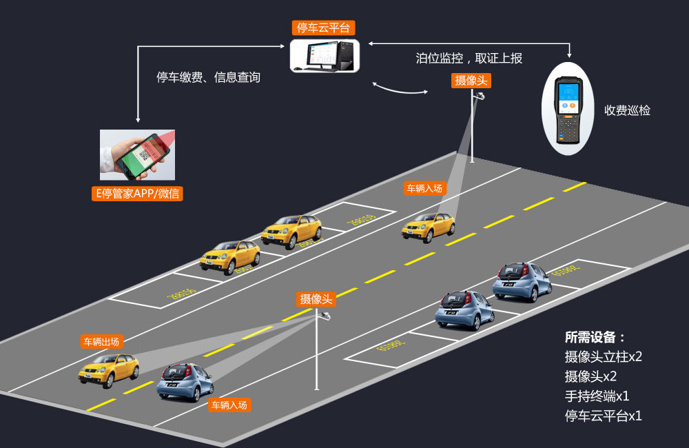 車牌識別攝像頭與手持終端連接云服務(wù)器,通過車牌識別技術(shù)進(jìn)行車牌信息的采集和比對,結(jié)合所在路段執(zhí)行的收費(fèi)標(biāo)準(zhǔn),完成車輛停車交費(fèi)業(yè)務(wù)的數(shù)據(jù)傳輸,包括車輛入場、車輛出場賬戶查詢、黑白名單、在線支付等操作。