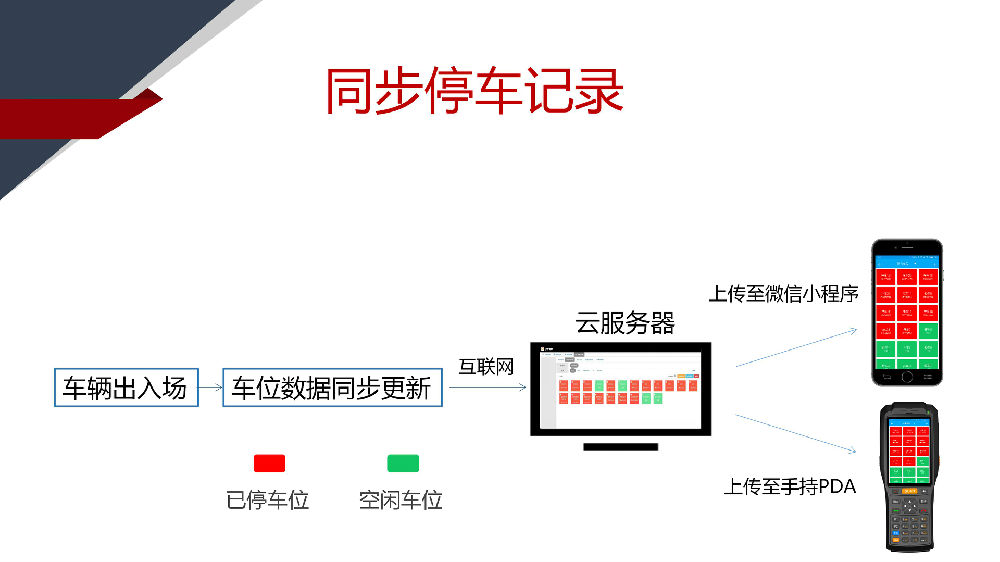 系統(tǒng)自動獲取停車數(shù)據(jù)的變化。結(jié)合車位的使用狀態(tài),真正實(shí)現(xiàn)停車記錄在服務(wù)器和手持終端間實(shí)時(shí)同步更新。避免車輛等待和車位空閑數(shù)據(jù)不一致的問題,減少車主和收費(fèi)人員之間的矛盾糾紛。